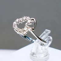 ハート形にメレダイヤを配した可愛らしいファッションリングです。ピンキーリングにも最適。